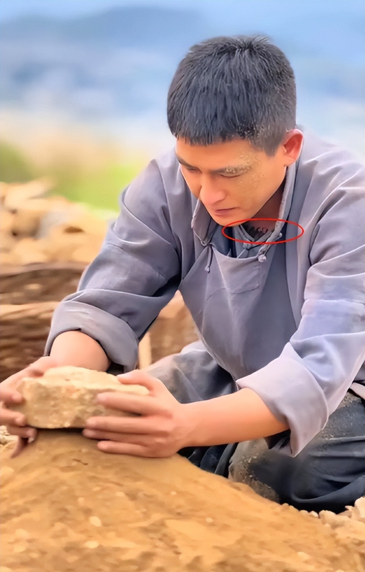 欧豪刚开始表现的都非常好,情绪顶的也很到位,不得不说还是赚了不少眼泪,只是这镜头一转,就看见了封大脚领口露出的皮肤上出现了纹身。